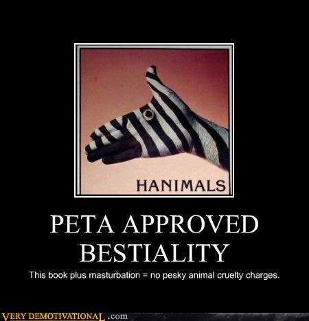 Secondly, I have absolutely no sympathy for you. You are a demented bastard and I do not believe that you are either salvageable or worth the effort. Thus, as an animal (the 4-legged variety) lover (platonic lover, like normal folks) I hope that A) your defense lawyer is a complete legal nitwit who doesn’t get enough sleep and has blood sugar issues when you are scheduled for Court, B) your prosecutor, Judge and Jury panel are all proud card carrying members of the ASPCA & PETA and C) you get sufficient jail time in a brutal enough institution so as to truly come to appreciate what the term “doggie style” means.