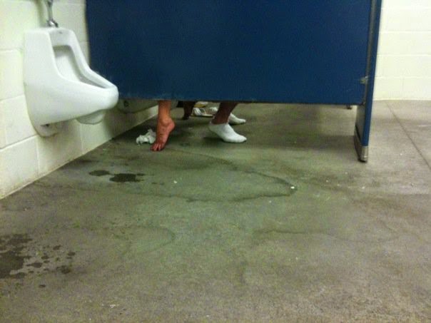 Memo to Kelli and Logan (and anyone other “outdoorsy” types): The next time that you get all hot and bothered and nature calls, take a safer calculated risk. If you cannot make it to a truly private place, or if you just want that thrill of possibly being caught, then mitigate your risk and find a bathroom stall, as demonstrated below: