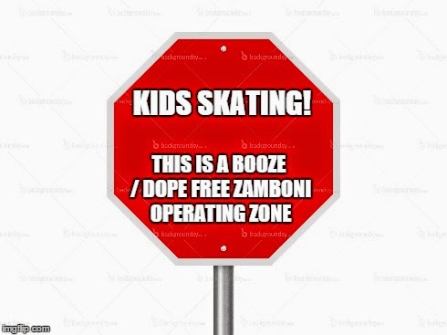 Stephen was arrested during the game at about 8:15 pm, after spectators and school officials noticed that the Zamboni (which is used for resurfacing – leveling – the ice during a hockey game (as well as at other similar events like basic ice skating rinks) was being driven “erratically”. Arrangements were made to have a “relief” Zamboni operator take over but the teams decided to continue play in “rough ice” instead. In the interim, the sign taped to the glass which says “Absolutely no one on ice while Zamboni is resurfacing” is a good warning, but, apparently more signs are needed.