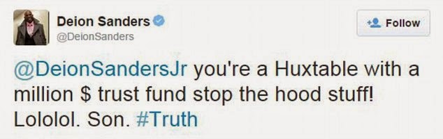His son, Deion Sanders, Jr. (pictured below), perhaps not so much (actually, by all accounts, and not withstanding the “hood” references, Jr. is also a solid citizen, following in dad’s famous footsteps)…