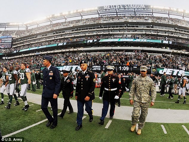 And here I have been for years, foolishly proud as an American, as a football fan, as a supporter of our troops, watching uniformed men and women on the field and in the stands all around our great country, when apparently the sad truth is that the NFL honors nothing but money as it cashes in on allegedly patriotic albeit actually dishonest troop displays at sports games.
