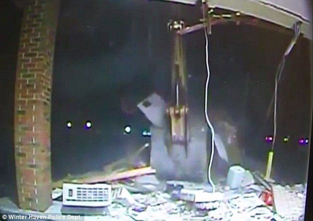 Before that glorious moment (which will forever be inscribed in Winter Haven PD lore) however, these genii managed to steal a backhoe from a construction site, drive it to the Center State Bank branch in Winter Haven, use it to smash down a wall and load a freshly disconnected ATM machine onto the flatbed of their “getaway” pickup. The incident was caught on surveillance video and you can watch the video here.