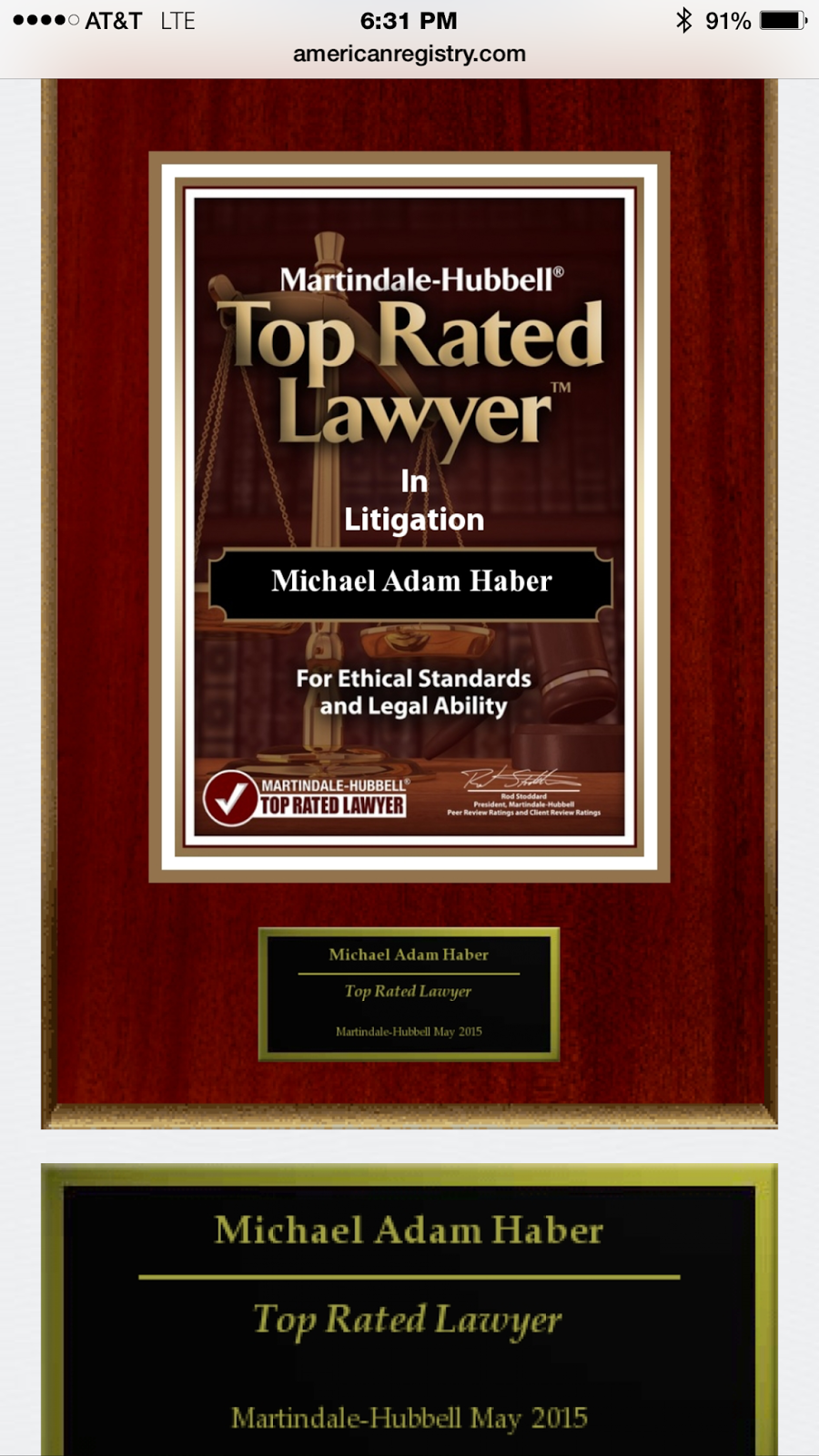 Michael A. Haber has also earned Top Ratings from Martindale-Hubbell