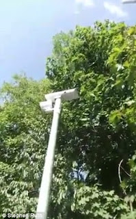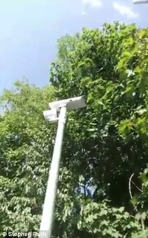While dressed in a white shirt and tie Stephen takes a pole and raises it to the mounted red-light camera, pushing the device upward stating that “it doesn’t take but more than a minute to do this, and the gratification… is huge.”