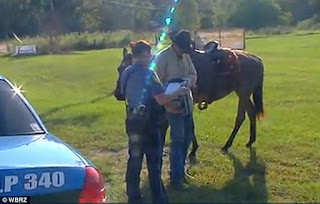 Realizing that he was too intoxicated to drive home Jake decided to jump on the back of his horse (named “Sugar”) and head home along side of the highway. It didn’t take long for Deputies to arrive, pulling Jake to the side of Highway 16 and telling him to dismount.