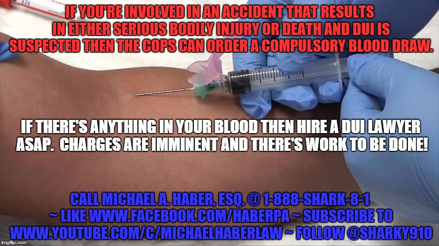 In the context of a DUI case the problem with blood work (or urine for that matter) is that it can detect substances in your system which were not effecting you at the moment even though they had not yet metabolized out. In the case of marijuana it is not uncommon for residue to appear in your blood (or urine) for weeks, and perhaps even months, after consumption (cocaine metabolizes much quicker but 2-4 days is not an uncommon period of time). If it is detected in your system then a presumption is created that you were legally impaired. You can rebut that presumption, but doing so is an uphill battle (especially when a dead young couple with a dead fetus are forced from their bed and into a neighbors home after your car was impaled into what was once their bedroom). Thus the lesson…