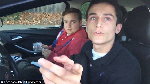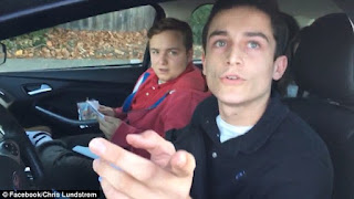 On the video Chris approaches the teen and says:  “You blow through stop signs all the way over here. You guys think it’s funny? I’m recording you and sending it to the cops. There’s a ton of people who complain about you.”… and this prompts the kid to try to obscure his face with his hand as a friend in the passenger seat looks on.