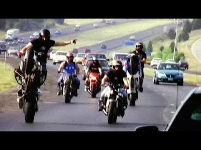 Memo to the Folks: I am a gun owner, a concealed weapons permitted citizen and I have no lost love for douche baggerous motorcyclists (** note I am referring to those who do not respect and follow road rules and traffic law because they are too cool for school… not all motorcyclists), but in no way, shape or form do I condone what the pick-up driver did in this case. Brandishing a firearm for self-defense requires a true (both subjectively and objectively true) fear for your life, not just an excuse to do so. Depending upon your State you may or may not have a DUTY to retreat before pulling out your gun but, in my humble opinion, standing your ground is only necessary where it is truly necessary. If I had been driving that pick-up then I’d’ve run that light before I drew my gun, but that’s me.