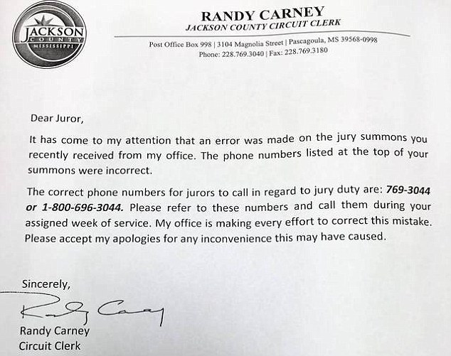 Per multiple news reports at least 350 Jackson County, Mississippi Jury summons’ were recently mailed out to potential jurors with an incorrect phone number, and the listed phone number reportedly instructed them to call a phone sex hot line.