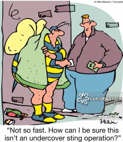 Memo to the Folks continued: There are many sorts of sting ops. A few examples are where undercover cops either pose themselves or they send a CI or a CS in who represents themselves to be: Someone who is seeking illegal drugs, contraband or child pornography to catch a supplier; a supplier to catch a customer (where the cops are the suppliers it is called a “reverse sting”), a potential customer of illegal prostitution; a prostitute to catch a customer (again a “reverse sting”), a child in a chat room to identify a potential child molester, a hitman to catch customers and solicitors of murder-for-hire, someone who offers to pass off fake or real explosives to a would-be terror bomber, deploying a bait car (or a “honey trap”) to catch car thieves, arranging someone under the legal drinking age to ask an adult to buy an alcoholic beverage or tobacco products for them… and the list goes on…