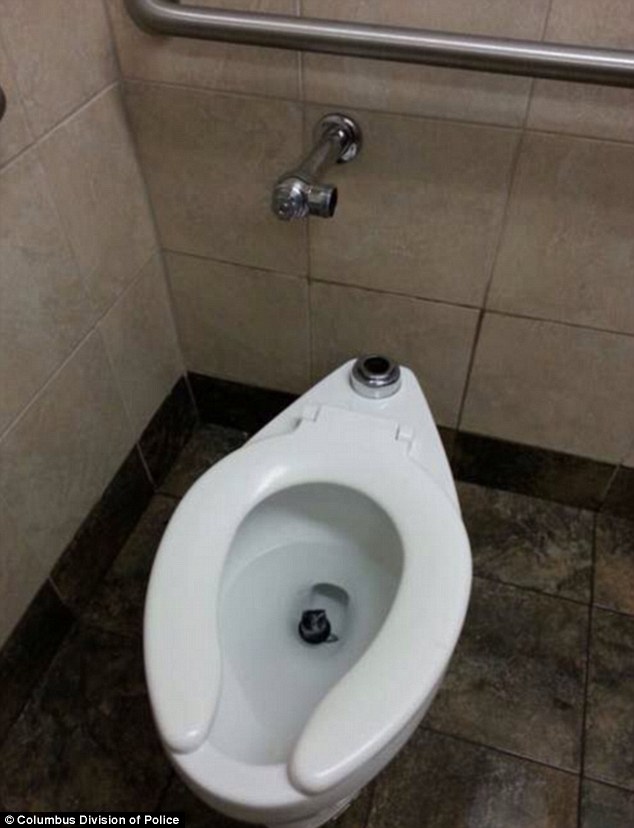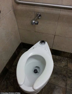 Du-wayne had been dubbed the “bathroom bandit” by the Columbus Police after a two week string of unsolved similar toilet tragedies between April 14 and 27, 2016. At each targeted location Columbus cops were called to men’s restrooms where they observed dismantled toilets and urinals (such as the one pictured below).