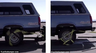 And, after watching a TV show about police chases (“The conclusion of one of the chases was an innocent motorist getting T-boned and I went to sleep that night just so aggravated that this was happening. And I woke up at 3:00 in the morning just suddenly and this was the first thought I had.”) Leonatrd invented “The Grappler”. As he saw it, the problem for police is that they only have a handful of options when slowing a speeding suspect. They can deploy spikes in the road to burst its tires, but that puts the life of the cop who lays the spikes in danger, as well as bystanders or the car’s occupants if it loses control. They can attempt to stop a car by performing the “PIT” (Precision Immobilization Technique) maneuver, which involves striking the car near the rear wheel with a police vehicle, turning it sideways and forcing it to stop, but that doesn’t work so well if the fleeing car has a trailer and there’s also always a risk that the suspect might try to set off again once they’ve stopped. In fact such tactics have reportedly led to the deaths of more than 11,500 people in America since 1979 (or almost one person a day).