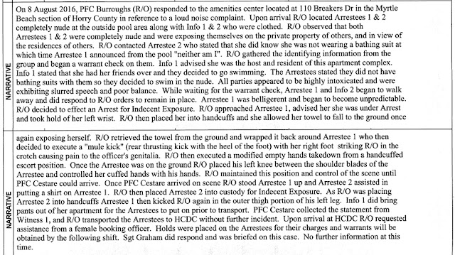 Horry County Patrolman Cody Burroughs must’ve thought that he hit the police response lottery when he observed Kadie and Kyla frolicking in the pool, aux natural, in the buff, skinny-dipping and partying away.