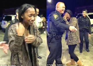 Shawna, quickly going from being frightened to being overjoyed, could not hold back her tears, and she was quickly comforted by an officer.