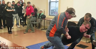 Around fifty (50) people were reportedly in the room watching Alyssa fulfill her wish of Tasering a policeman. Another sergeant, Sgt. Al Shaffer, reportedly asked those present to shout “Taser! Taser! Taser!”, with Alyssa firing on the third “Taser”, after which a selfless Sgt. Bline winced in pain and was slowly escorted to the ground after being voluntarily shot. (You can watch video footage of the nontraditional event by clicking here.)