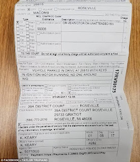 Taylor would later explain his frustration to local TV station ABC 7 stating that “I thought it was some kind of joke at first, and then I was thrown back by it.  I was furious when I saw it. Every person warms up their car.  We live in Michigan!  I was in and out in probably about 7-8 minutes, so in that amount of time he ran up here, gave me a ticket and by the time I got out he was nowhere to be seen.”  Taylor maintains that Officer Keary should have knocked on his door and said something rather than silently issuing him a ticket and leaving.
