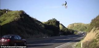 A video was uploaded to Kyle Katsandris’ Instagram account (which you can access by clicking here) and which purportedly shows him jumping over the State Route 60 Freeway in Moreno Valley, California, flying from one hillside to another.