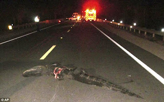 Calun did not see the more than 10 foot long alligator that just so happened to be crossing the road in front of him, at just the wrong moment of time, until it was too late…